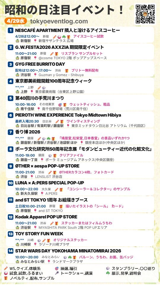 [昭和の日]イベント情報(2026-04-29)